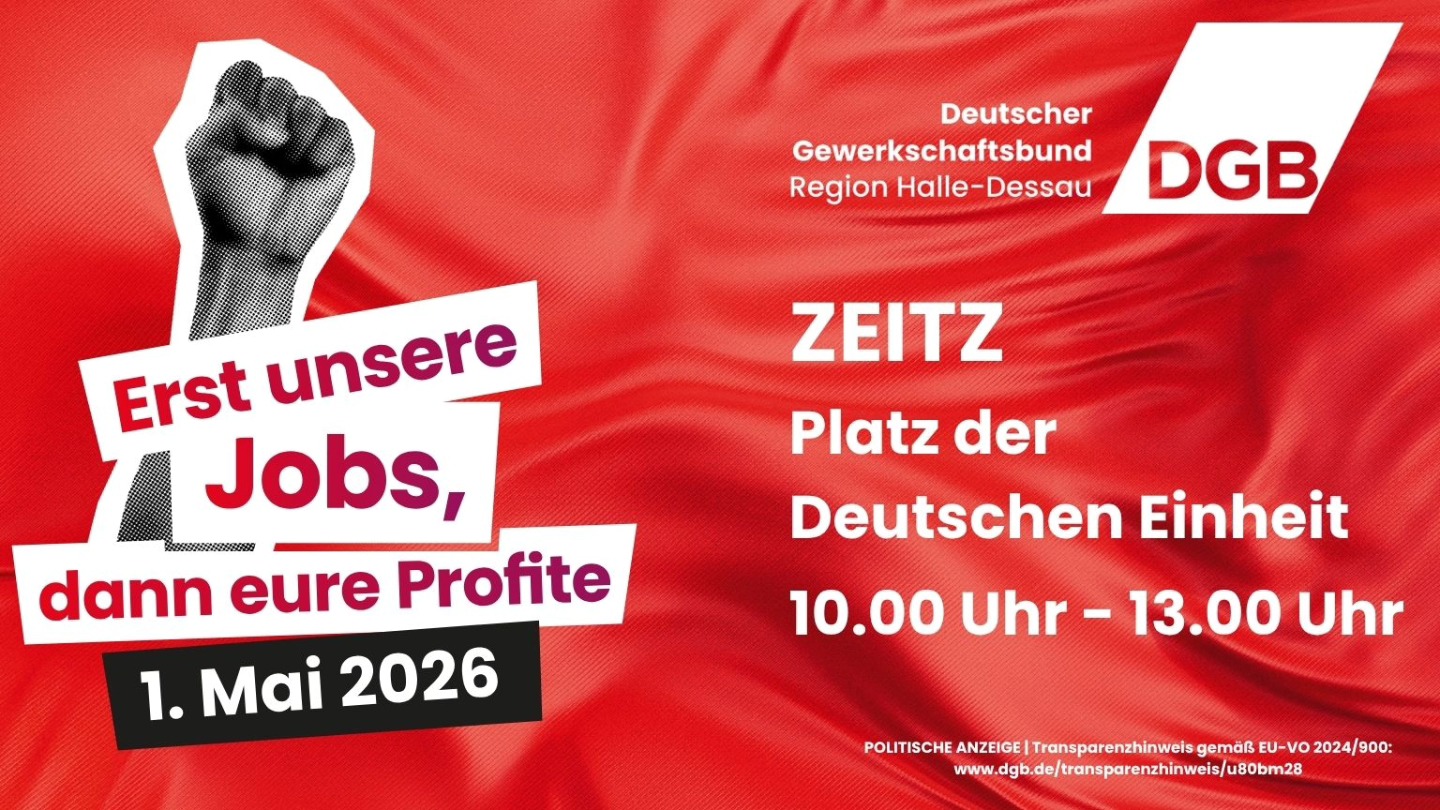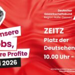 Die Maifeier steht in diesem Jahr unter dem Motto „Erst unsere Jobs, dann eure Profite“.