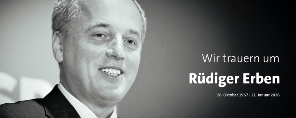 Die Nachricht über den plötzlichen Tod von Rüdiger Erben ist unfassbar. Unsere Gedanken sind bei seiner Familie, seiner Frau, den Söhnen und Enkelkindern, der Mutter.